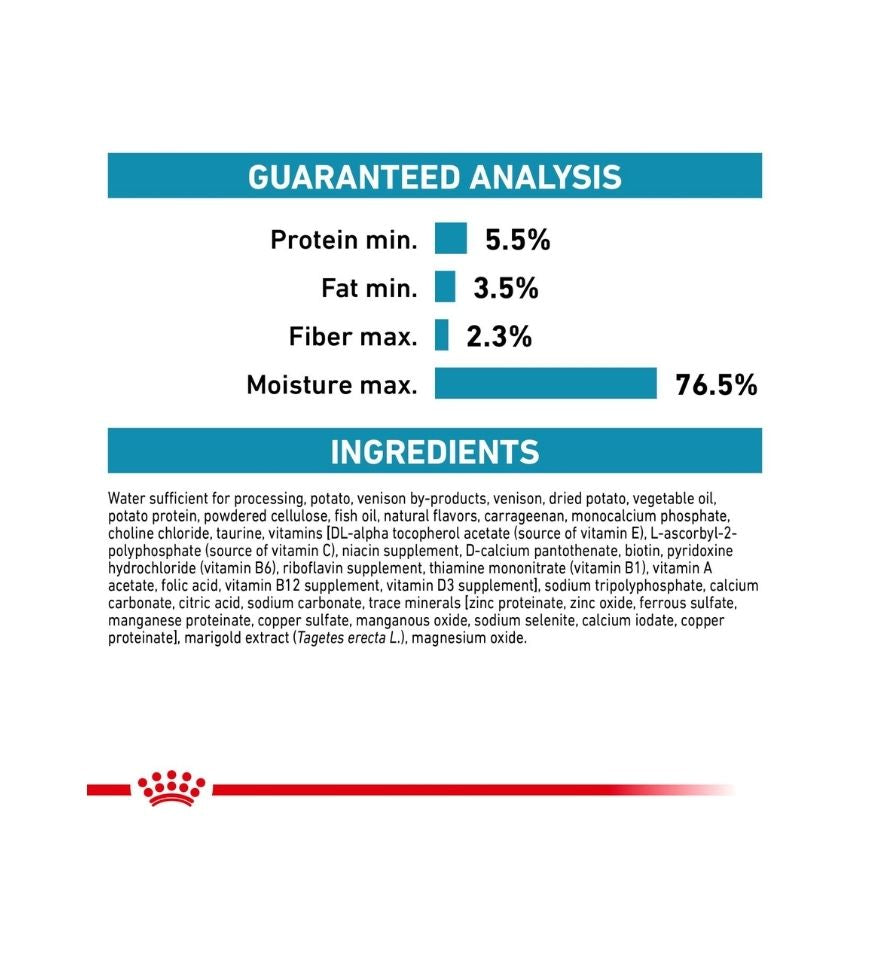 Crude Protein (min.) 5.5%, Crude Fat (min.) 4.8%, Crude Fiber (max.) 2.3%, Moisture (max.) 76.0%.