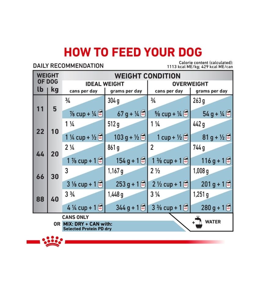 This diet contains 1113 kcal ME/kg; 429 kcal ME/can on an as fed basis (calculated).
