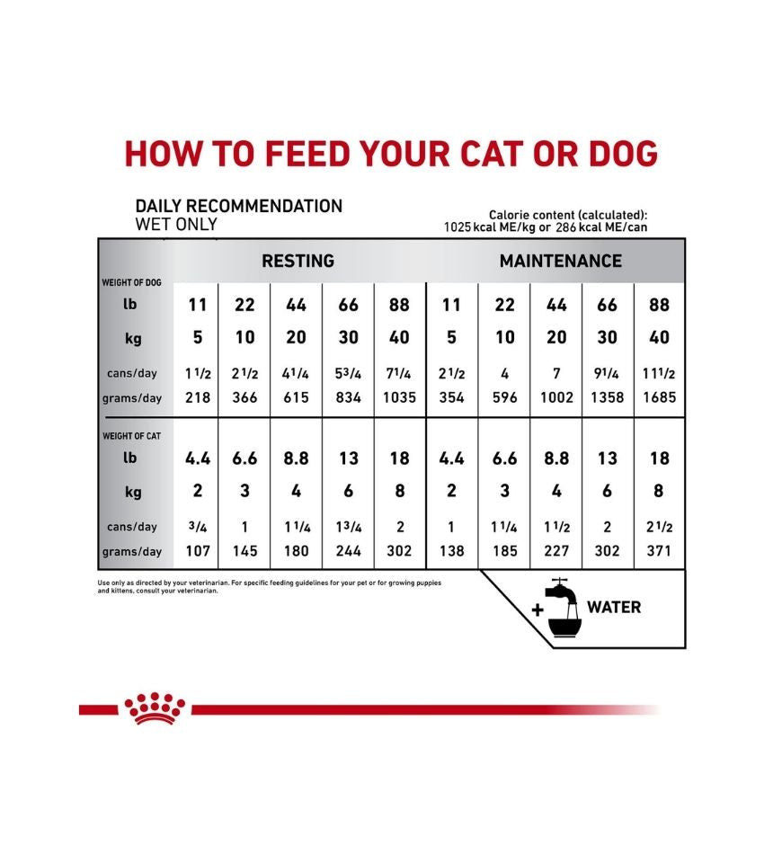 Calorie content: This diet contains 986 kcal ME/kg; 143 kcal ME/can on an as fed basis (calculated).